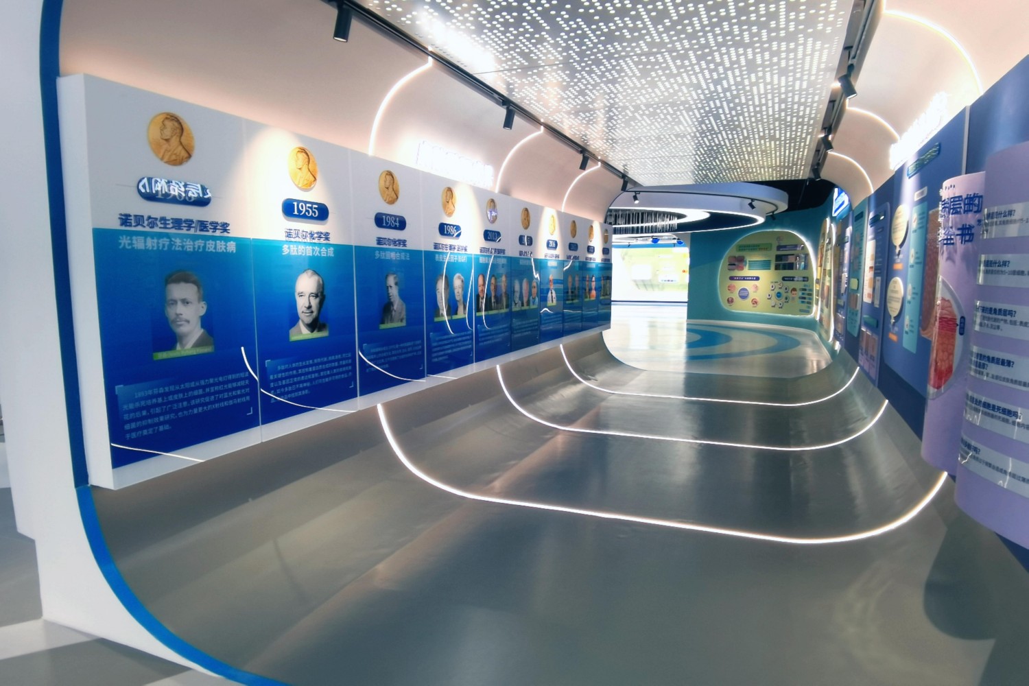 图集展示了陕西绽媄娅生物科技有限公司位于常熟分公司的皮肤科学馆展厅装修工程,项目位于常熟市高新技术产业开发区银河路128号协同创新产业园,建筑面积520㎡,包含了广告布饰面、设备采购及基层制作安装,本项目最大的挑战是工期仅13天,甲方需在固定时间对外展示,在甲方的深度信任下,我司项目经理带领团队三班倒24小时全面抢工,充分规划好每一个施工环节,提前1天交付给到甲方用以现场演练。本项目展示了公司攻坚项目的决心,也积极响应了甲方的需求,承诺所及,使命必达。